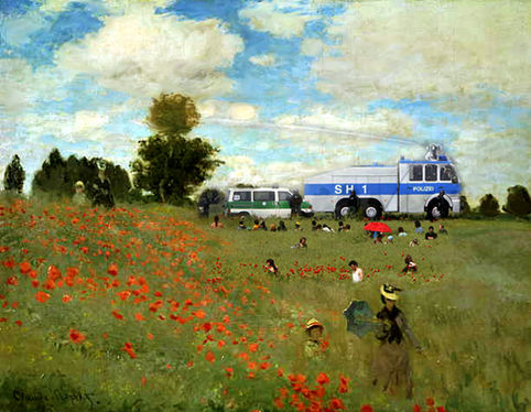 Das vielleicht einzige Bild, das die Linke vom G8 gemacht hat, ist eine Montage mit dem Titel "Les coquelicots de Heiligendamm", im Internet leicht zu finden, auf der, im Unterschied zu allen anderen Bildern aus Rostock und Heiligendamm, Tote zu sehen sind. Nicht 25, aber immerhin vier, gestorben unter unbekannten Umständen im frühen 20. Jahrhundert (selbst das lässt sich nur schätzen), gemalt von Claude Monet, an einem Sommertag, an dem sie noch am Leben waren. Als Tote haben sie zwar kein Recht, aber vielleicht doch einen legitimen Anspruch auf Abbildung, zumindest im Gegensatz zu Grönemeyer oder Deppendorf. Die Form der Wahrnehmung, die die Linke wäre, beginnt nicht mit der Gegenwart, sondern mit der übrigen Zeit, und kann unter dem Regime der Tagesaktualität, der Herrschaft eines arroganten Blicks auf die Welt, der stets das aktuelle Elend, oder Glück, dem vergangenen oder zukünftigen vorzieht, nichts ausrichten. Und wozu auch.